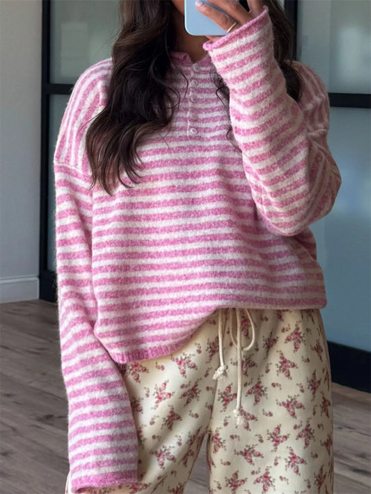 Button Down Striped Collared Neck Long Sleeve Shirt
