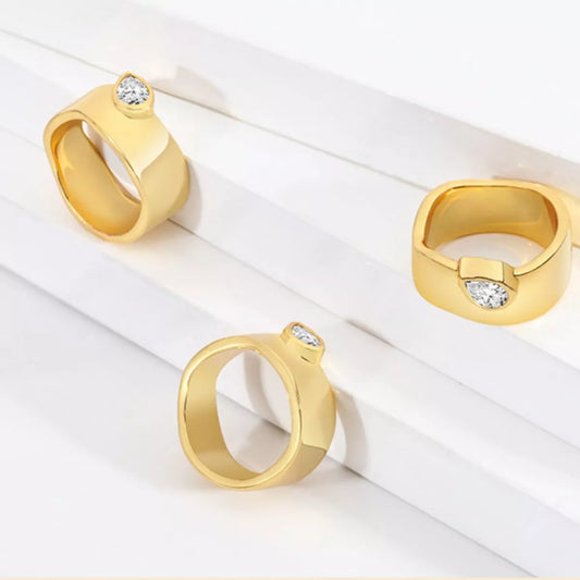 18K Gold-Plated Open Bracelet and Ring Jewelry Set