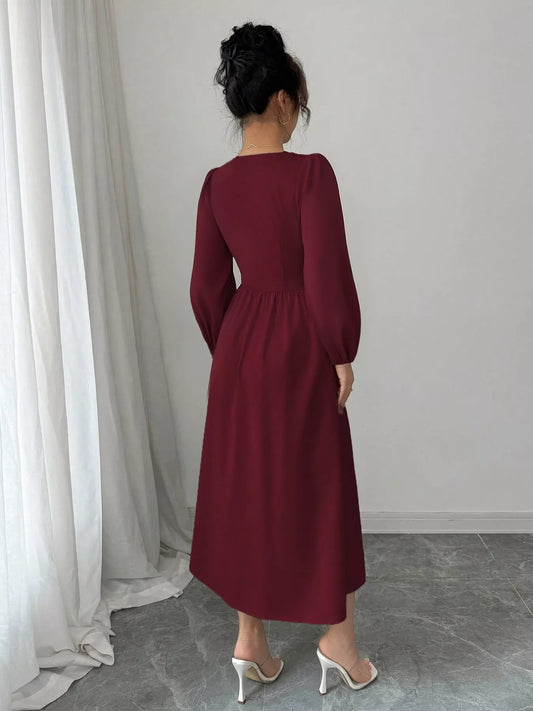 Solid Color Turtleneck Drop Shoulder Loose Sweater Dress