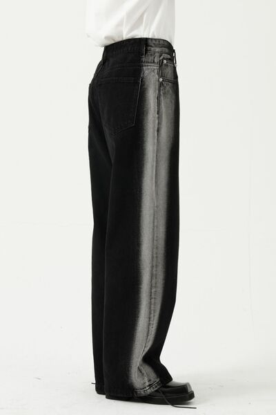 Mittoshop Washed Wide Leg Jeans with Pockets