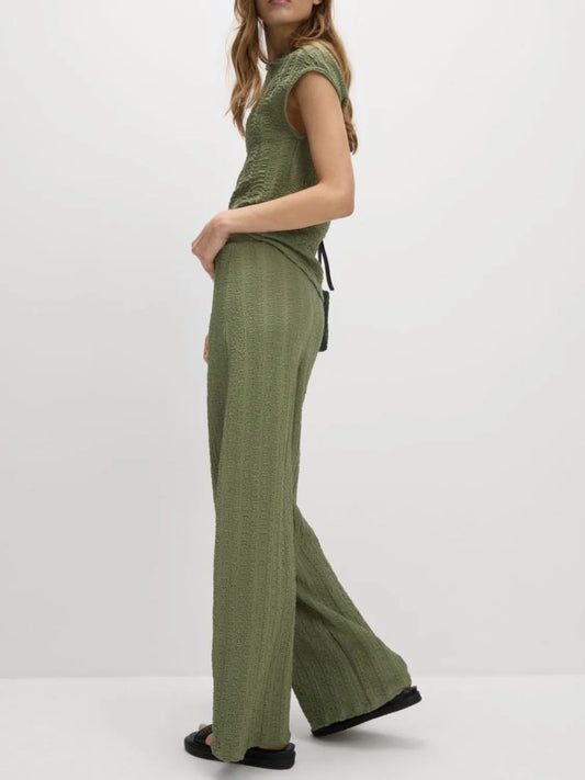 Ribbed Knit Cardigan & Wide Leg Pants Set