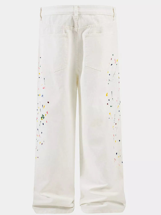 Men's Paint Splatter Artistic Wide Leg Jeans