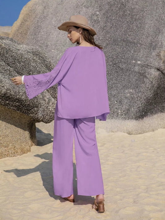 Diamond Pattern Long Sleeve Top and Pants Two-Piece Set