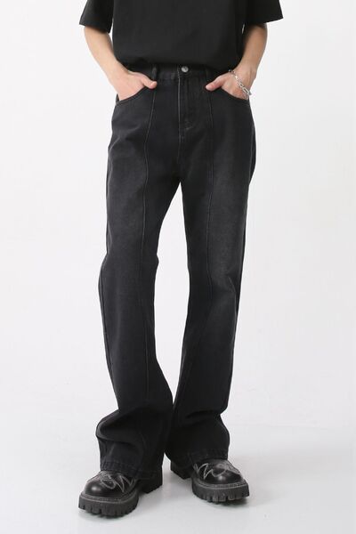 Men's Washed Rhinestone Jeans with Rhinestone Belt