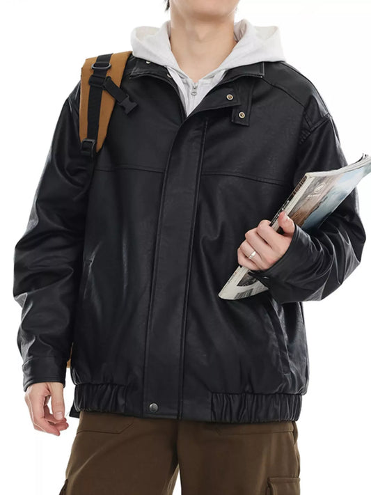 Men's Plus Size Zip Up Leather Bomber Jacket