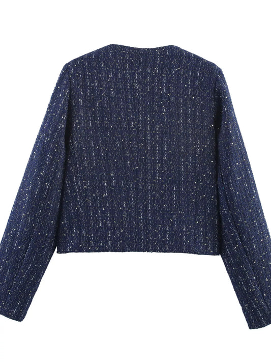 Tweed Button Up Cropped Outerwear