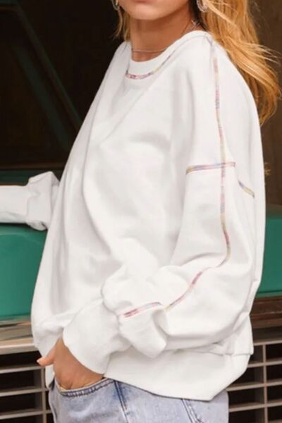 Rainbow Trim Round Neck Long Sleeve Sweatshirt