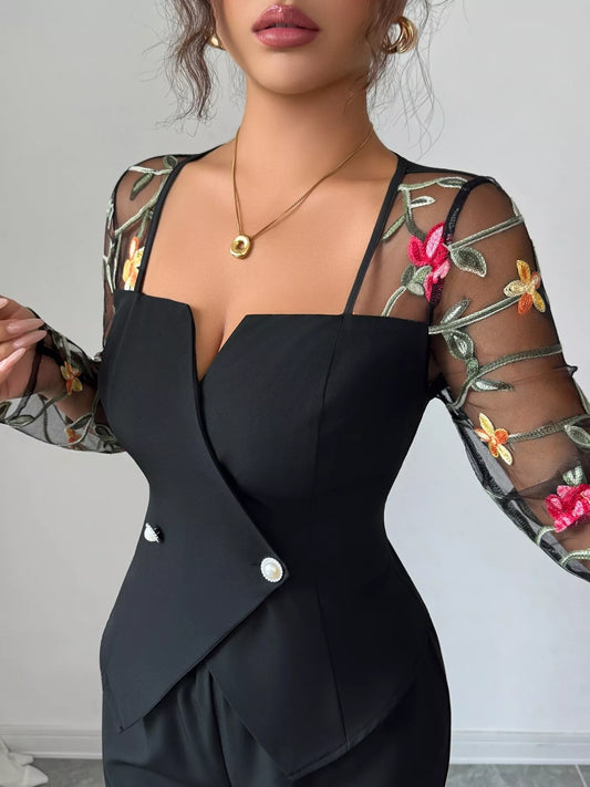 Round Neck Bow Pattern Pearl-Embellished Sweater