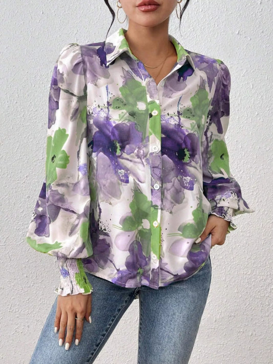 Plus Size Floral Flutter Sleeve Blouse with Smocked Back