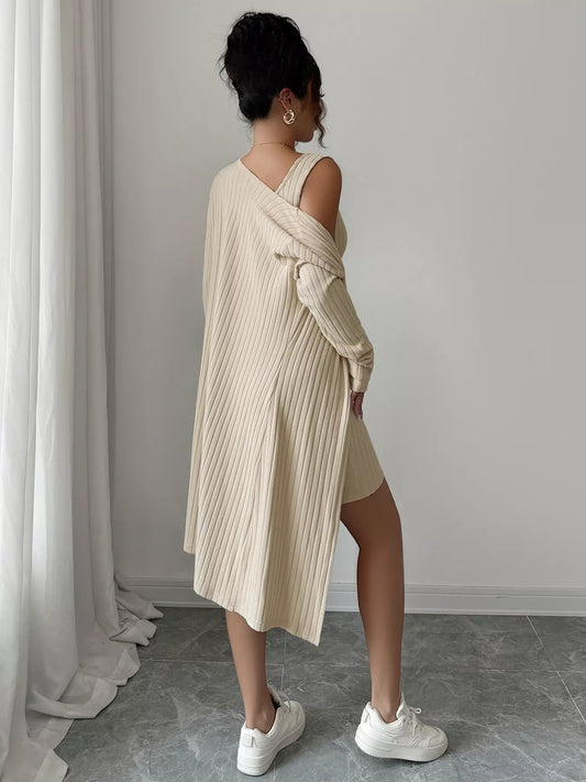 Ribbed Knit Cardigan & Wide Leg Pants Set